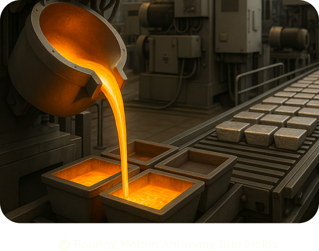 Our high-quality pure antimony comes in three grades, produced through advanced smelting and refining processes to meet international standards.